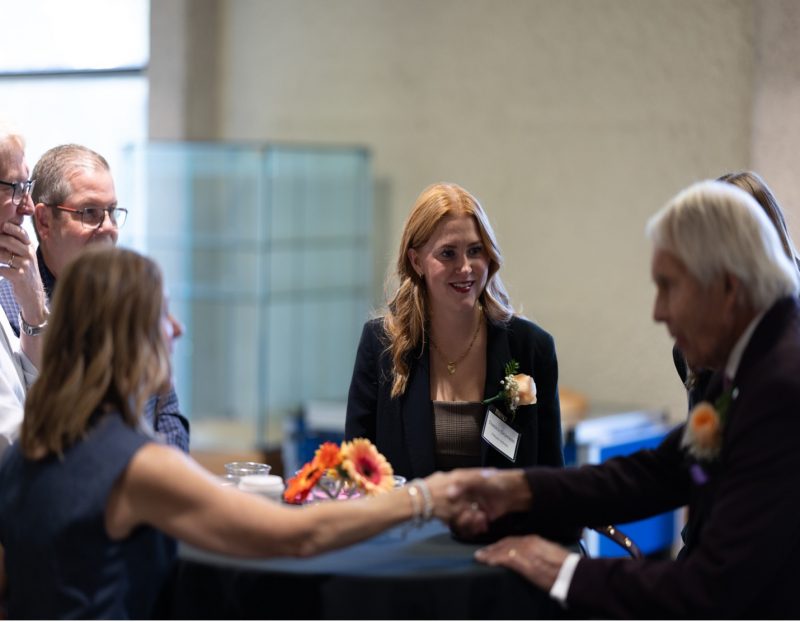 Before any awards are given out or names are called, the scholarship winners receive boutonnieres that match the Pitblados’ own. These adornments help donors and students find each other in a room filled with families, faculty, and community members. Striking up conversations, the Pitblados take great interest in getting to know their scholarship recipients and encouraging their career goals.