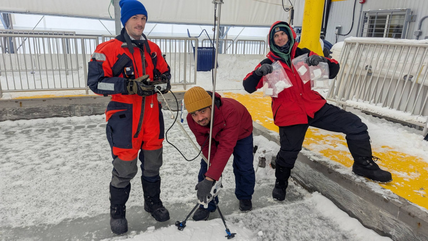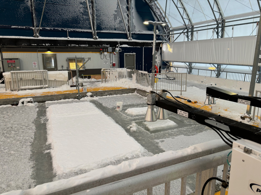 In February, a research team led by Dr. Julienne Stroeve and Dr. John Yackel, with collaborations from Dr. Dustin Isleifson, conducted an experiment studying how salinity changes the properties of snow and radar scattering when thin layers of sea ice are weighed down by large amounts of snow precipitation and subsequently flooded from underneath – a phenomenon that could occur more regularly in the Arctic as the sea ice thins under a warming climate.