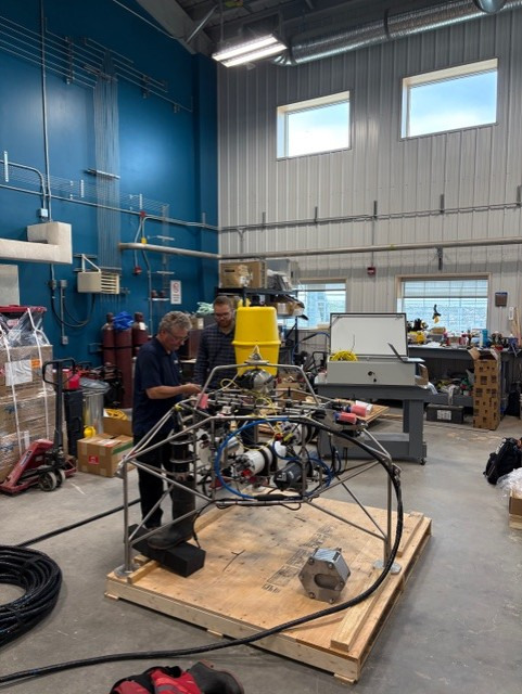 Image 4: The EO System’s cabled observatory being prepared by MTE Instruments staff in the CMO workshop prior to its deployment into the Churchill River estuary. Credit: C.J. Mundy.