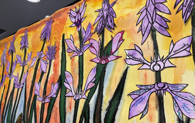 Arts-based advocacy in community mental health care visioning activity, with art creation and leadership from collaborator Aimee-Mihkokwaniy McGillis.