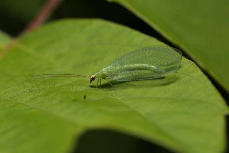 - Green Lacewings (Chrysopidae family): They look very friendly with their bright green color and long, clear wings, but their larvae are fierce predators! Called “aphid lions,” they feed on aphids, whiteflies, thrips, and even small caterpillars.