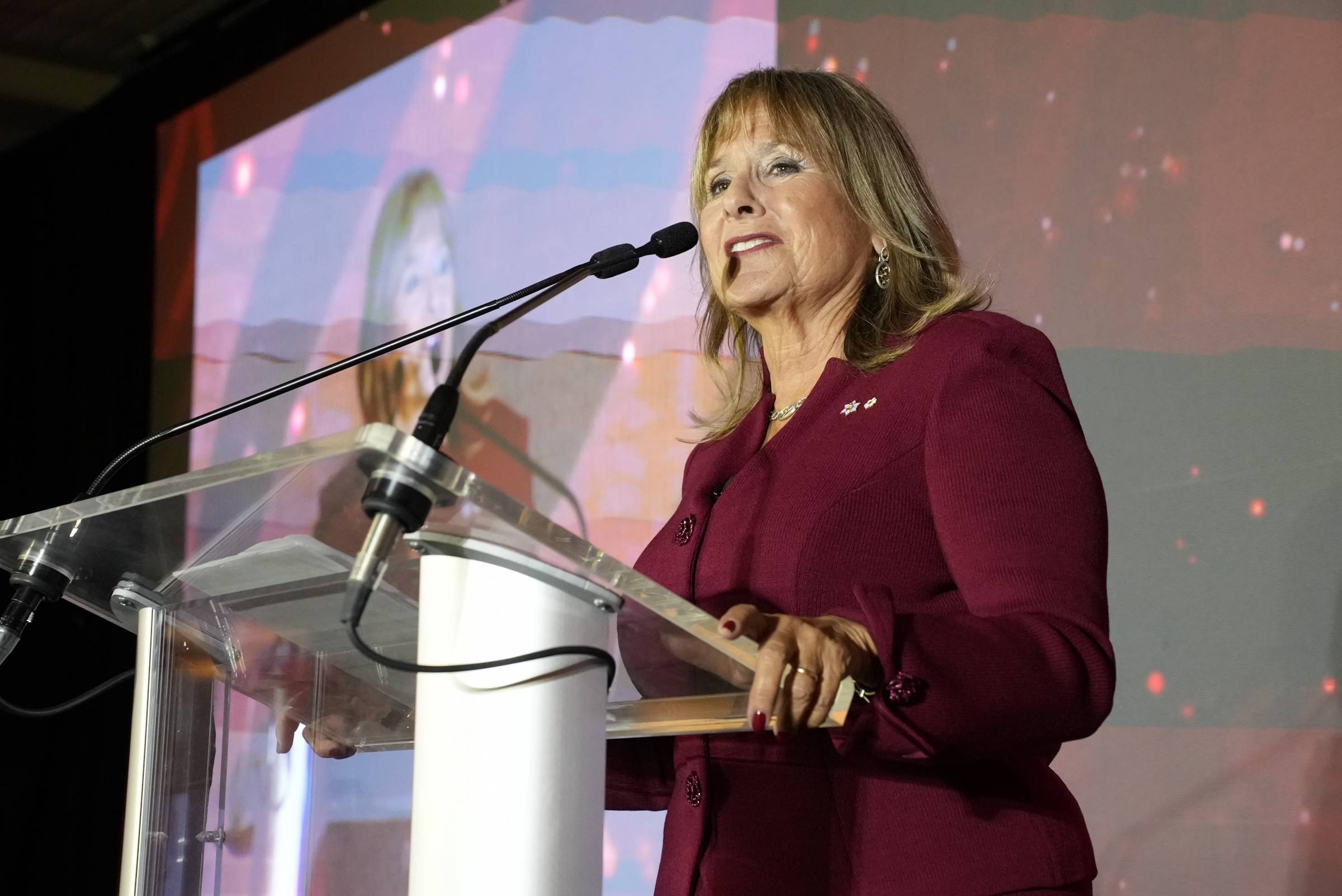 Gail Asper delivers a speech at the IGNITE awards on September 17, 2025