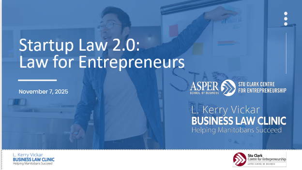 For more information about the L. Kerry Vickar Business Law Clinic and free legal support and information, see: L. Kerry Vickar Business Law Clinic – Helping Manitobans succeed