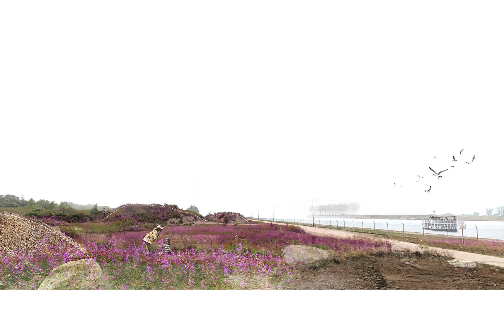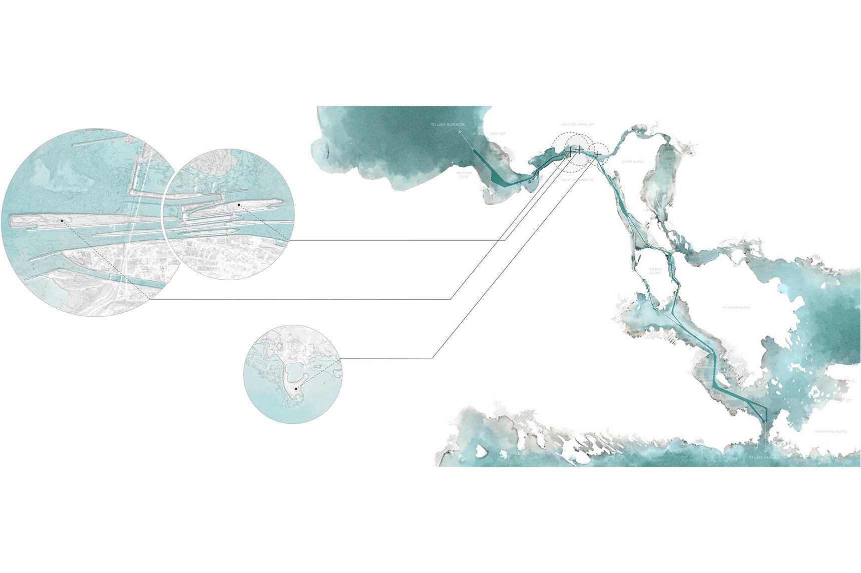 Jamie’s thesis work, “Liminal drift: revealing the human hand in shaping the untouched Great Lake,” questions the idealized portrayal of Lake Superior, claiming that such a simplified view hinders a genuine connection to the place. It proposes a different perspective by designing locations that highlight humanity’s influence on the landscape.