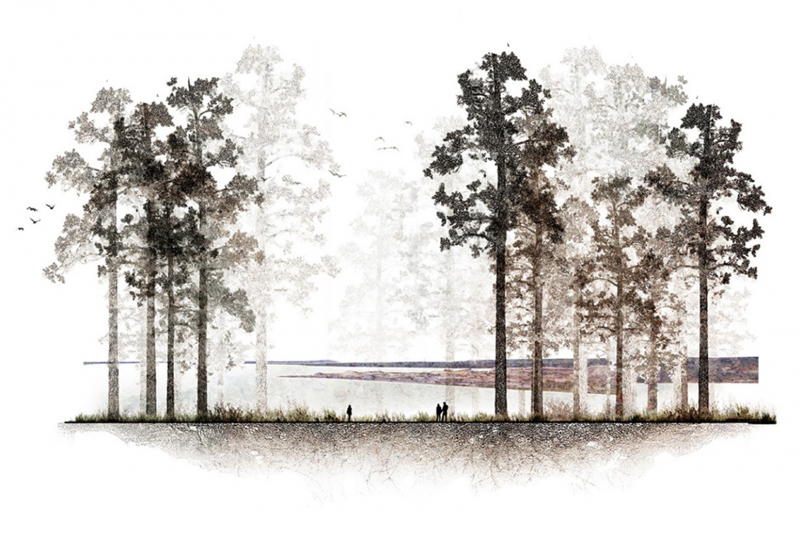“This thesis project was stunning, well articulated and tackled a complex topic which was clearly presented. The jury appreciated the inquiry of the human impact on a perceived natural landscape: the connection of experience, place, and human intention within natural systems can begin to make changes in the relationship between humans and nature. It features extensive research of natural and man made history, questioning the human impact of landscape and the duality between nature and our perception of what is natural.”
