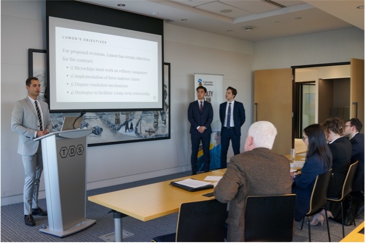 The Business Law Group (BLG), a student group focused on corporate and commercial law at Robson Hall, first introduced the competition two years ago as a way to offer students a practical learning experience in transactional practice. The event, which continues to be a resounding success, has led to a continued partnership with the Marcel A. Desautels Centre for Private Enterprise and the Law, allowing the BLG to run the competition for its third consecutive year.