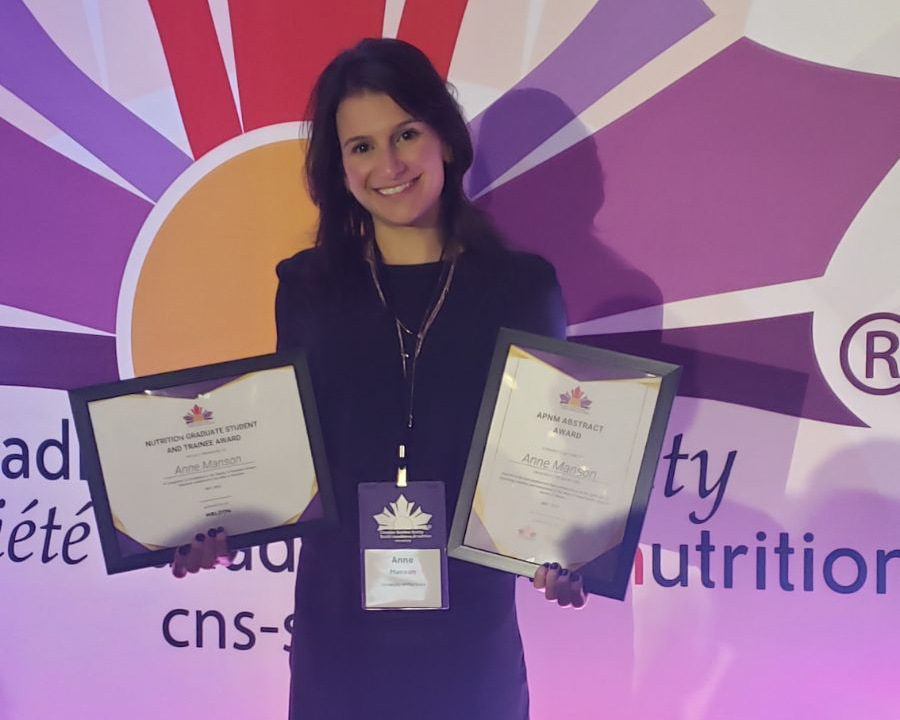 - The Nutrition Graduate Student and Trainee Award / Christine Gagnon Memorial Travel Award, presented to only eight students across Canada. This award included the opportunity to deliver an oral presentation in a dedicated session at the conference, highlighting her research to national experts and peers.