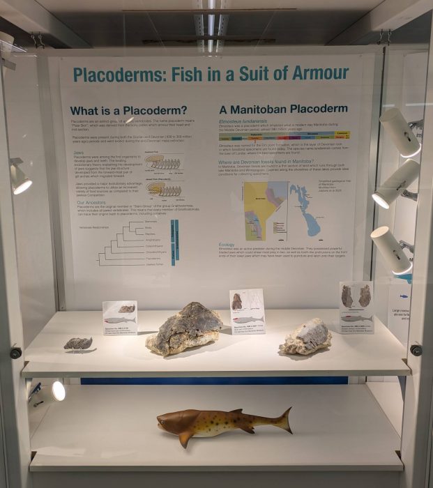 Elmosteus was first described by a UM graduate student back in 1996, under another name. Since then, additional material has been found both in the collections of the Manitoba Museum and from new discoveries in the field, which allowed for a better understanding of the animal and the introduction of Elmosteus, named after the Elm Point Formation, the rock formation it was found in.