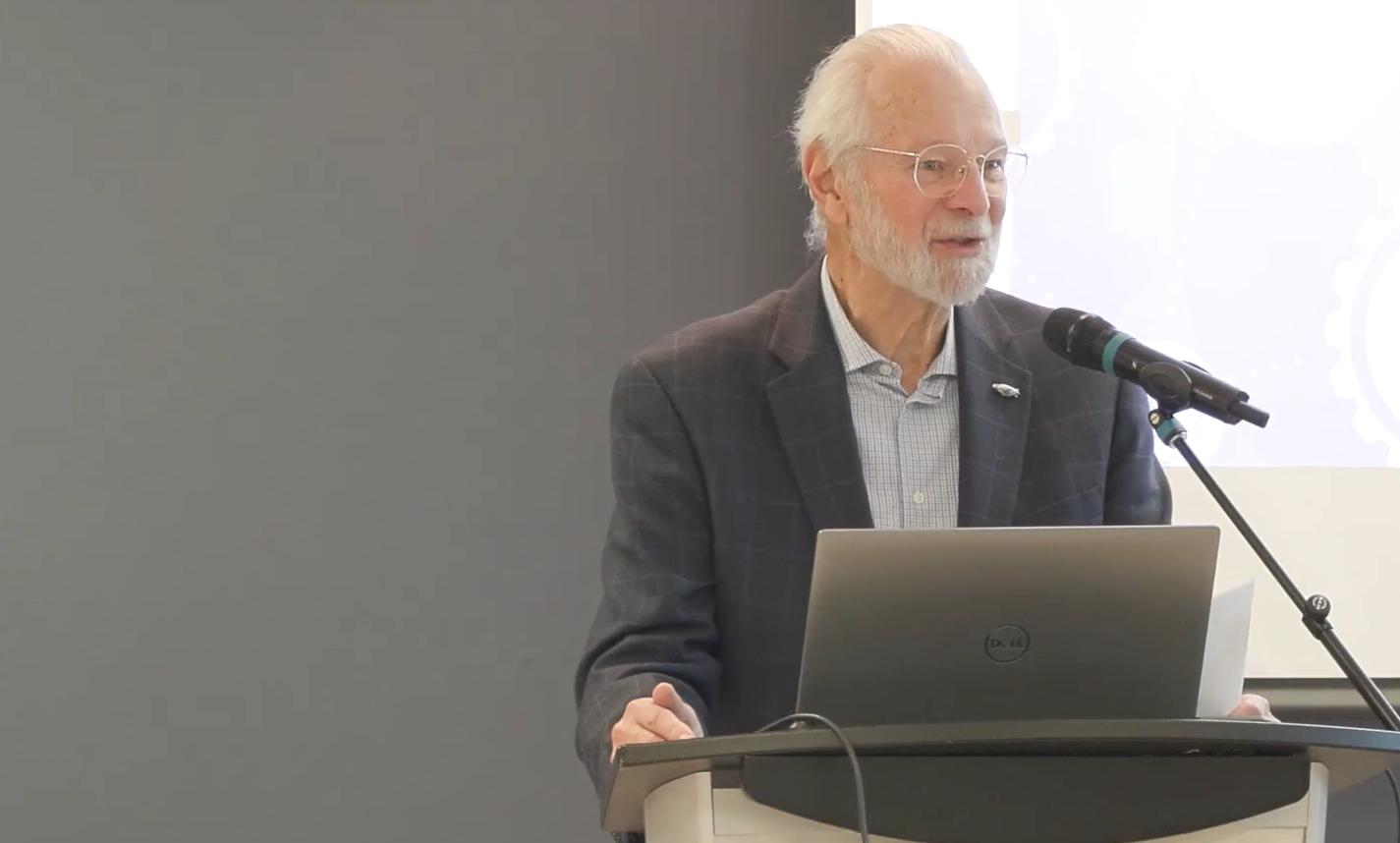 Introducing the topic at a podium, Professor in Supply Chanin Management and Director of the UMTI Barry Prentice remarked that trade with America has gotten “a little unusual, perhaps because of the unusual person in the White House.”
