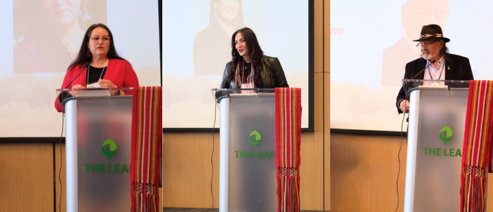 From left to right: Associate Vice-President (Indigenous) Christine Cyr, Vice-President (Indigenous) Angie Bruce, and Elder Carl Stone.