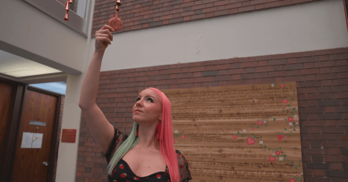 While Lara’s work continued with the RRRC, reflecting on teachings and truth-telling, she found herself working with small copper plates and rolling jingles until she collected buckets full.