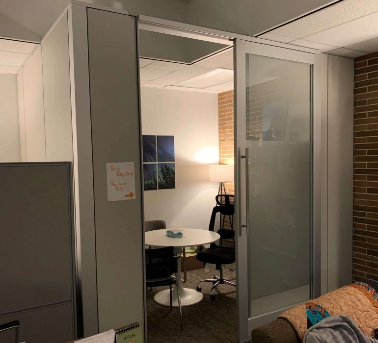 Arlana Vadnais, Associate Director, Wellness and Prevention, Student Support, says, “The pod allows us to offer students seeking peer support a comfortable, welcoming, and much more private space than before. It also greatly enhances the multi-purpose use of the Student Wellness Centre, as it is used for team meetings, planning sessions and trainings.”