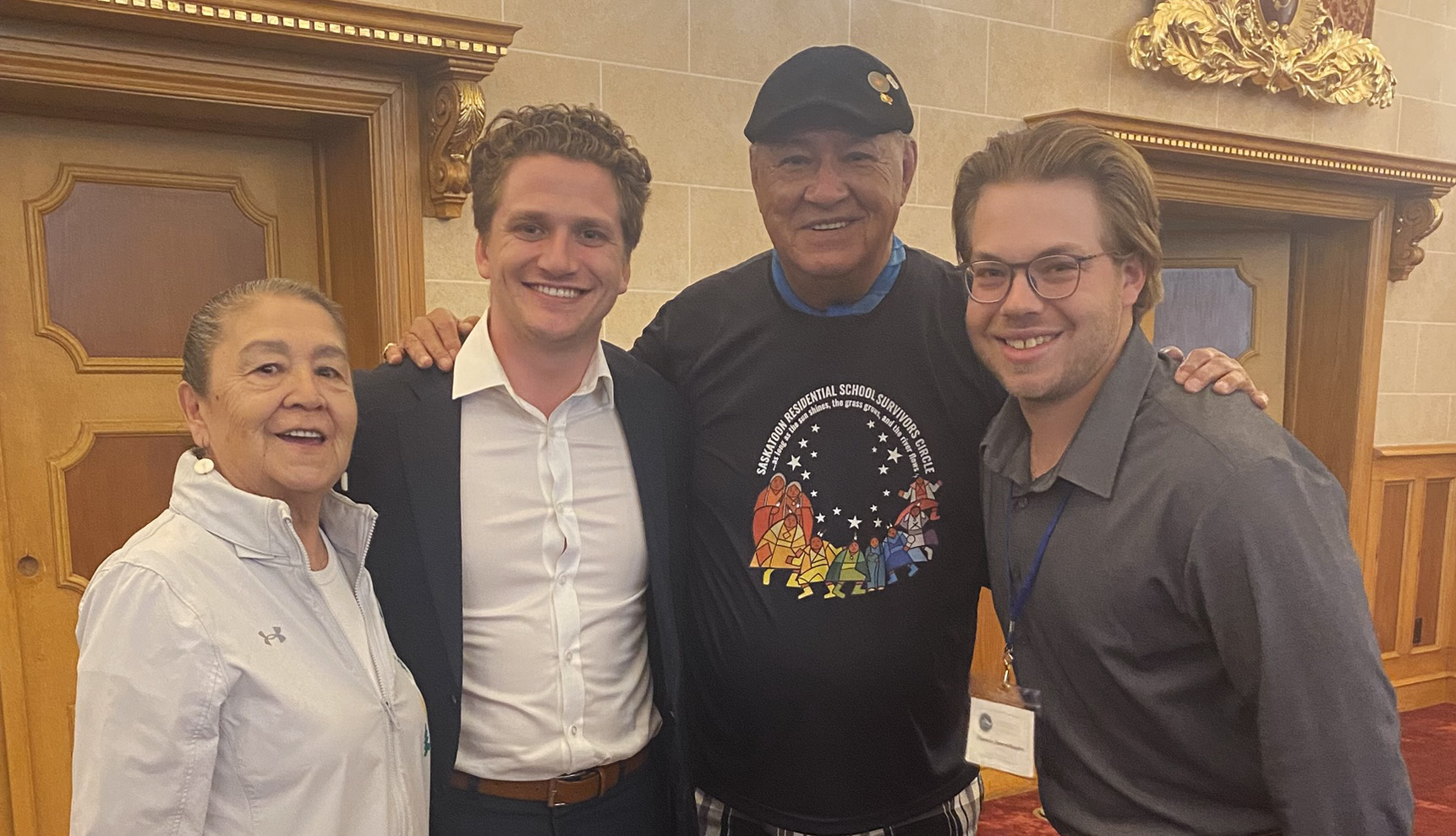 Left to right: Lorna Arcand, Travis Dech (3L), Eugene Arcand, and Thomas James-Davies (2L) at the 2025 Hockey Conference at Fort Garry Hotel.